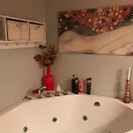 Overnattingen består av ett soverom og ett bad med separat toalett og badekar.